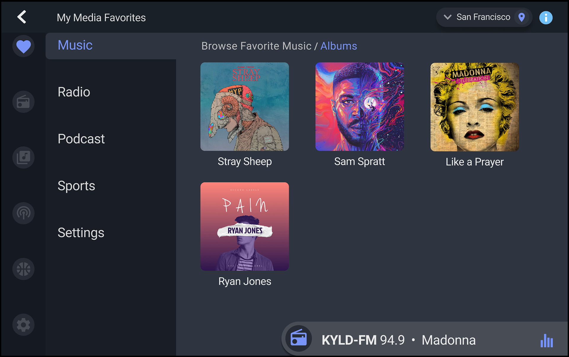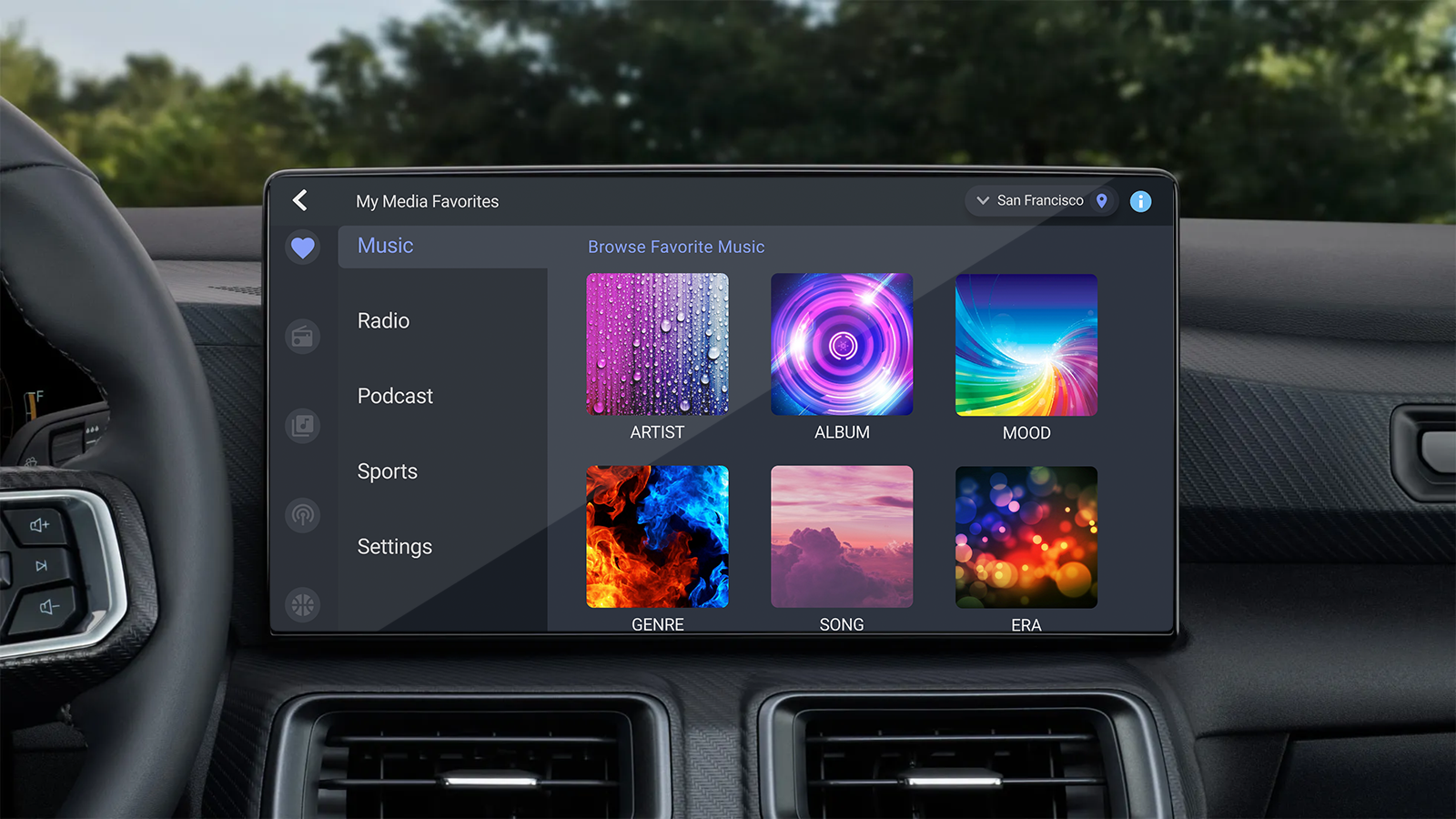 Matthew developed pre-seeding flows and initial selection screens (favorite eras, genres, moods) to jumpstart personalization for new users, ensuring immediate demonstration of Gracenote’s data value. He combined collaborative filtering (community-liked artists provided by Gracenote) with content-based filtering using detailed track descriptors, and designed touch-first, muscle-memory interactions to keep controls eyes-on-road friendly while showcasing metadata-driven experiences. He prototyped the My Media Favorites dashboard as a modular interface with categories—Music, Radio, Podcast, Sports, Settings—and a Browse Favorite Music area featuring tiles for Artist, Album, Mood, Genre, Era, and Song, leveraging MusicID Radio to populate the UI. Regular stakeholder check-ins guided iterative refinements to usability and information hierarchy. Metadata was integrated to enable saving favorites, generating similar-content recommendations, and seeding stations/playlists. He added sports personalization (team logos, live scores) and location-aware features to broaden appeal and demonstrate data depth.