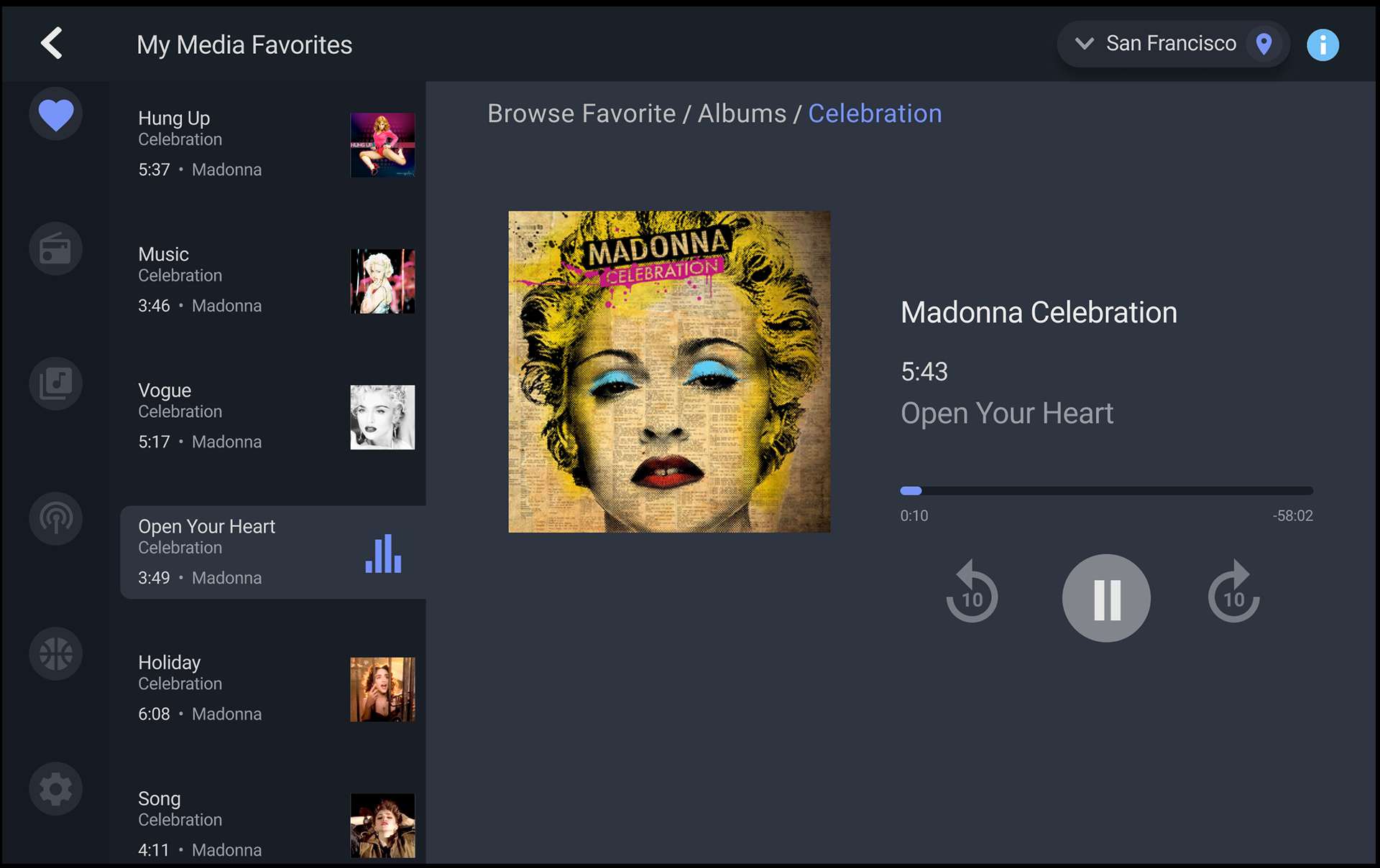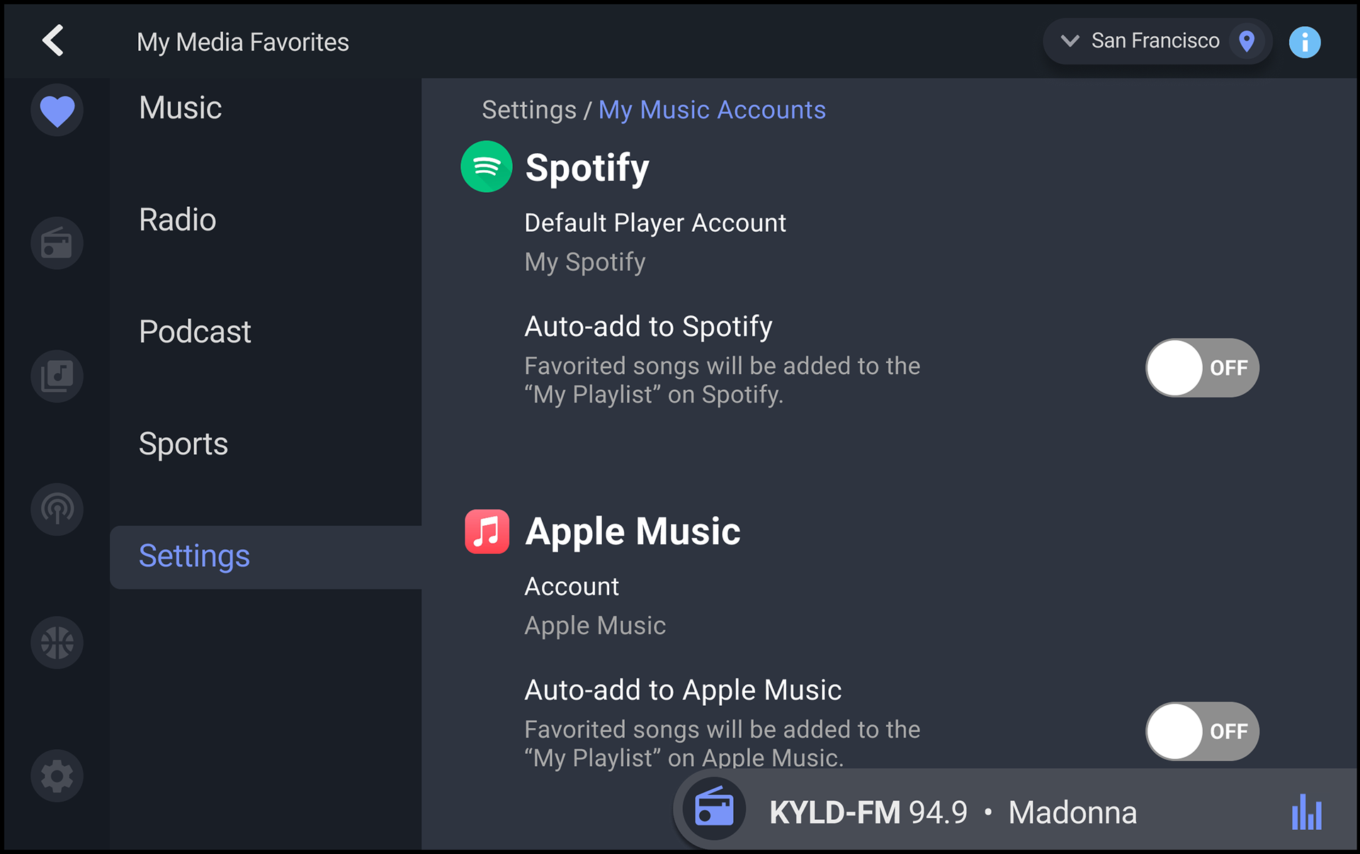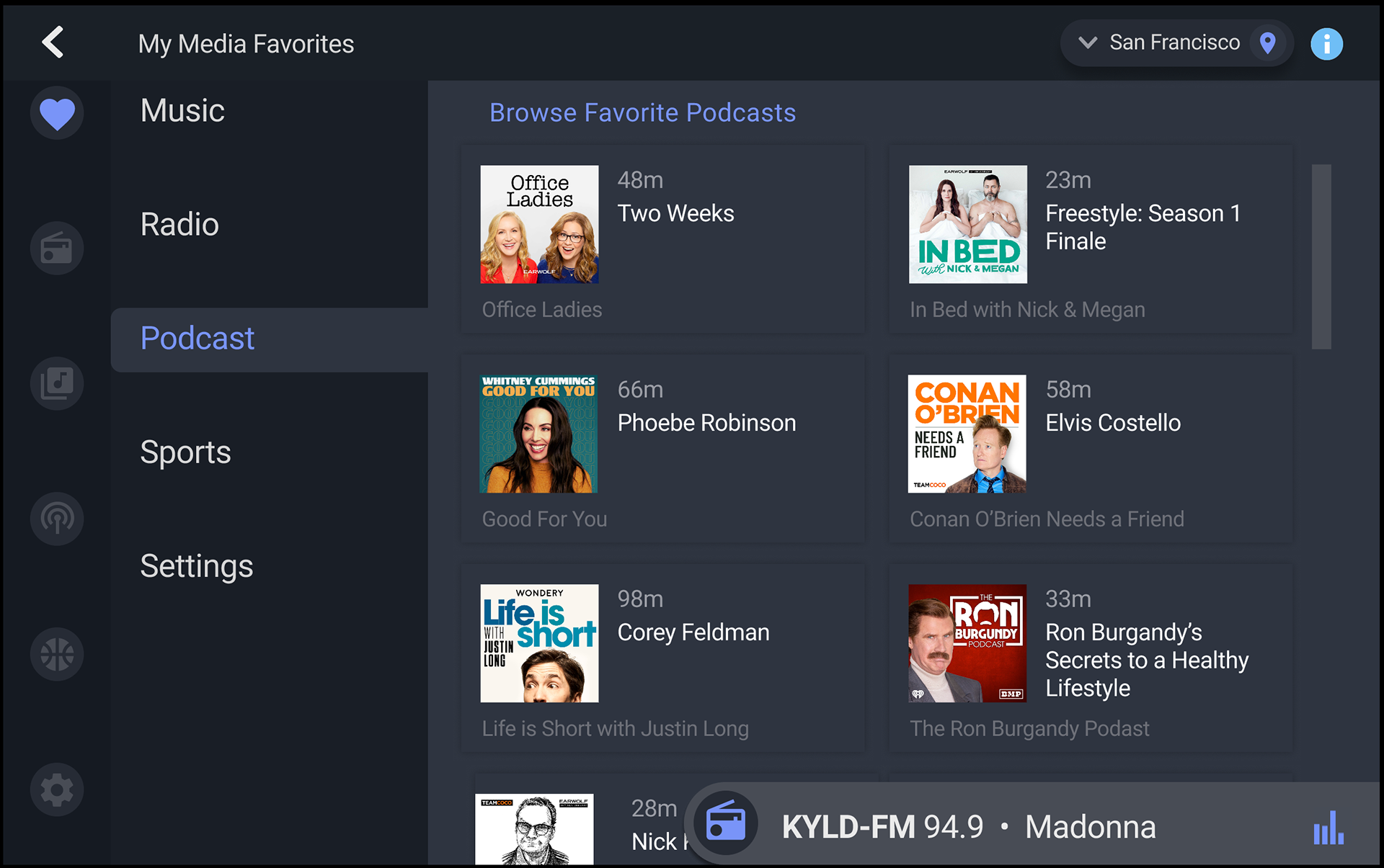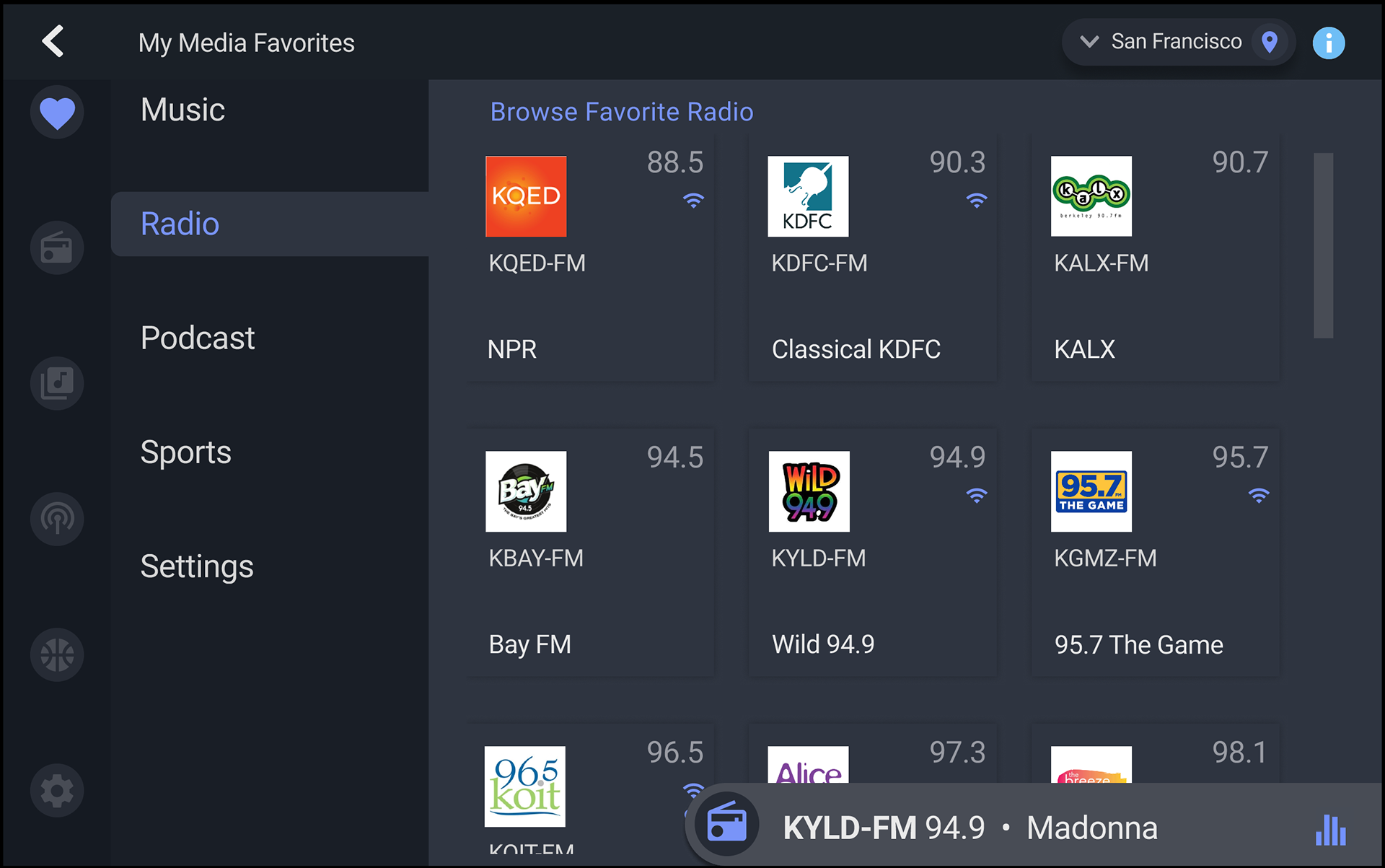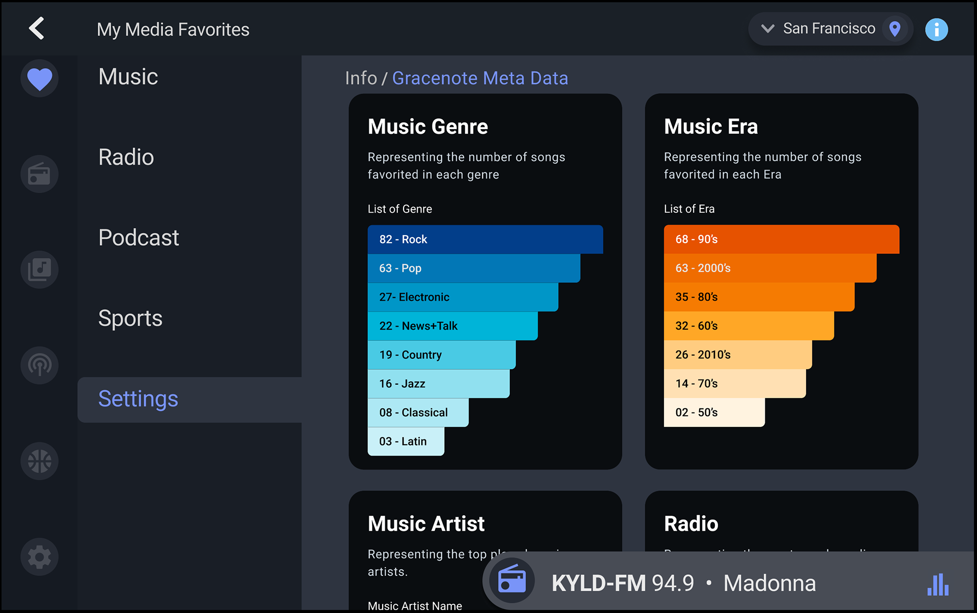 The outcome was a scalable My Media Favorites interface that increased user engagement by giving drivers an intuitive way to save and rediscover music, podcasts, and sports—backed by analytics and under-the-hood metrics showing Gracenote data at work. The design clarified to conference clients that Gracenote leads in the metadata that drives listening experiences, effectively positioning the company as the unseen engine behind leading apps. Radio and streaming services were seamlessly integrated, enabling the team to seed stations and playlists and illustrate potential for multi-service sharing. The interface delivered a personalized, safe in-car experience that addressed product challenges (cold-start personalization, distraction minimization, multi-source integration) and convinced target clients of Gracenote’s unique value proposition.
